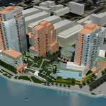 A 25-story tower on the site’s southern portion at the corner of Division and Kent Avenues would provide 309 residential units and 29,000 sq.ft. of retail space. South 11th Street, which currently ends at Kent Avenue, would be extended across the site providing a 60-foot wide visual corridor to the waterfront. North of the visual corridor, the developer would construct an eighteen-story building along Kent Avenue with 221 dwelling units. A 29-story building would provide 271 dwelling units on the site’s northern portion. Twenty percent of the project’s floor area would be set aside for affordable housing, which would result in 160 affordable one-, two-, and three-bedroom units located throughout the three buildings. A waterfront esplanade would include 33,188 sq.ft. of publicly accessible open space, and an underground garage would provide 496 parking spaces.